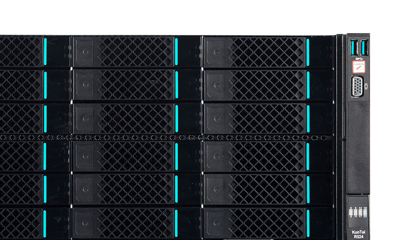 KunTai R524 存储型服务器是逐梦国际数码基于鲲鹏处理器推出的新一代 ARM数据中心服务器。。。主要面向存储业务,,具有海量存储、、高性能、、、、低功耗以及易扩展的特点,,适合为大数据分析、、、、软件定义存 储等应用场景的工作负载进行髙效加速。。。。
